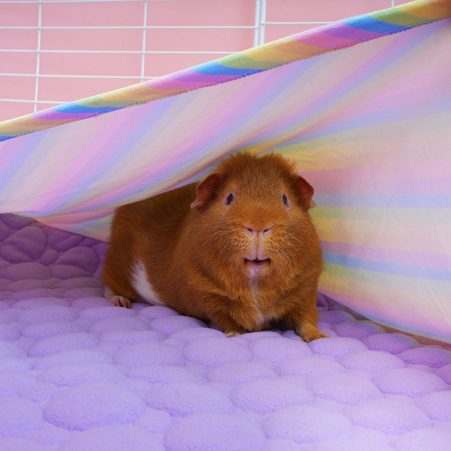Marre de passer votre temps à nettoyer la cage ? Simplifiez-vous la vie et faites plaisir à vos cochons d’Inde avec nos Tapis Polaires Premium, maintenant disponibles dans notre motif best-seller Arc-en-ciel !
