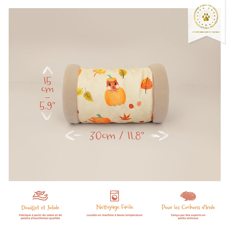 Offrez-leur le tunnel en polaire le plus confortable pour les cochons d'Inde, parfaitement adapté à votre petit ami à poils - et maintenant disponible dans notre design d'automne Pumpkin Spice Chon !
